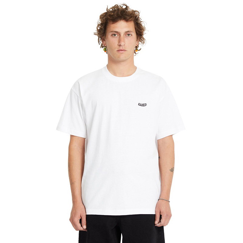 Throw on this loose-fit organic cotton Pistol Stone tee and let the front embroidery speak your language.