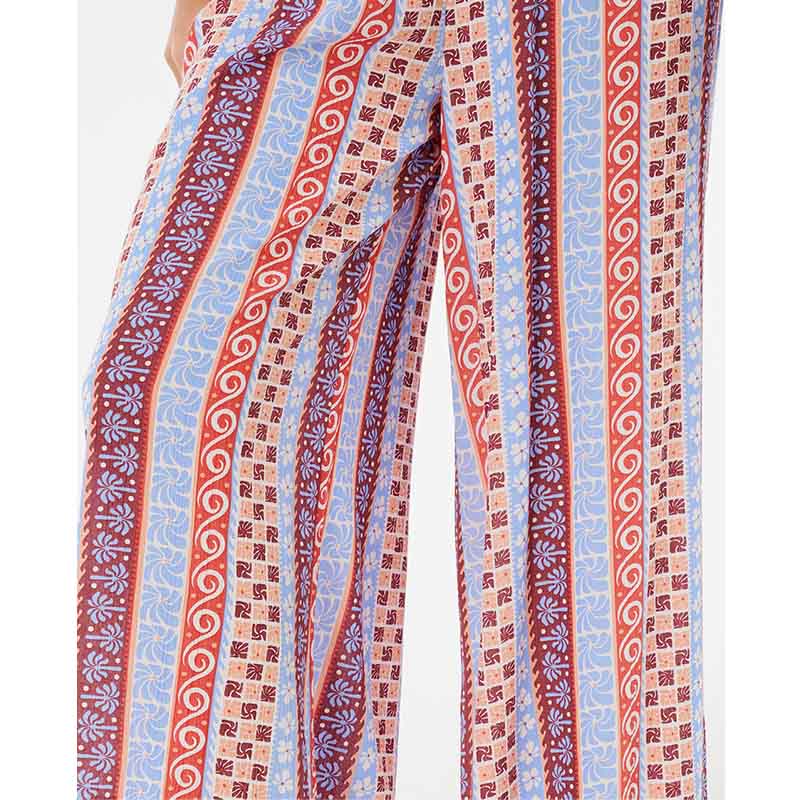 From beach to boardwalk, the Ventura Shirred Jumpsuit brings effortless style with its smocked bodice, adjustable halter ties, and all-over yardage print, while the placement border detail adds a surf-inspired finish.