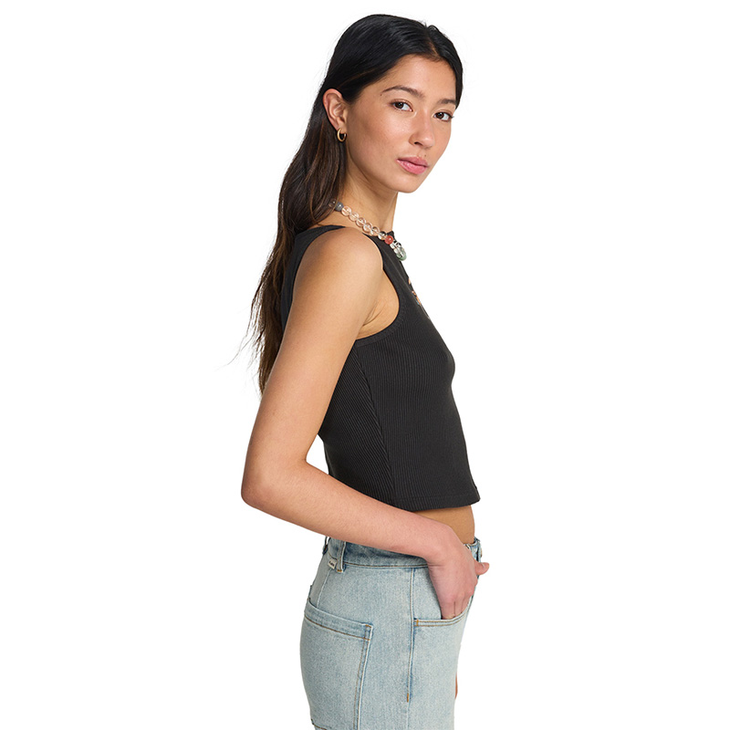 Fabric: Cotton elastane rib Fit: Fitted design Neck: Scooped neckline Flag label Front embroidery